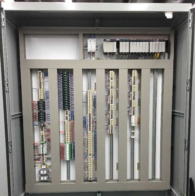 - Conception d’un panneau de contrôle déporté pour annexer au contrôle automate existant les nouvelles entrées et sorties nécessaires